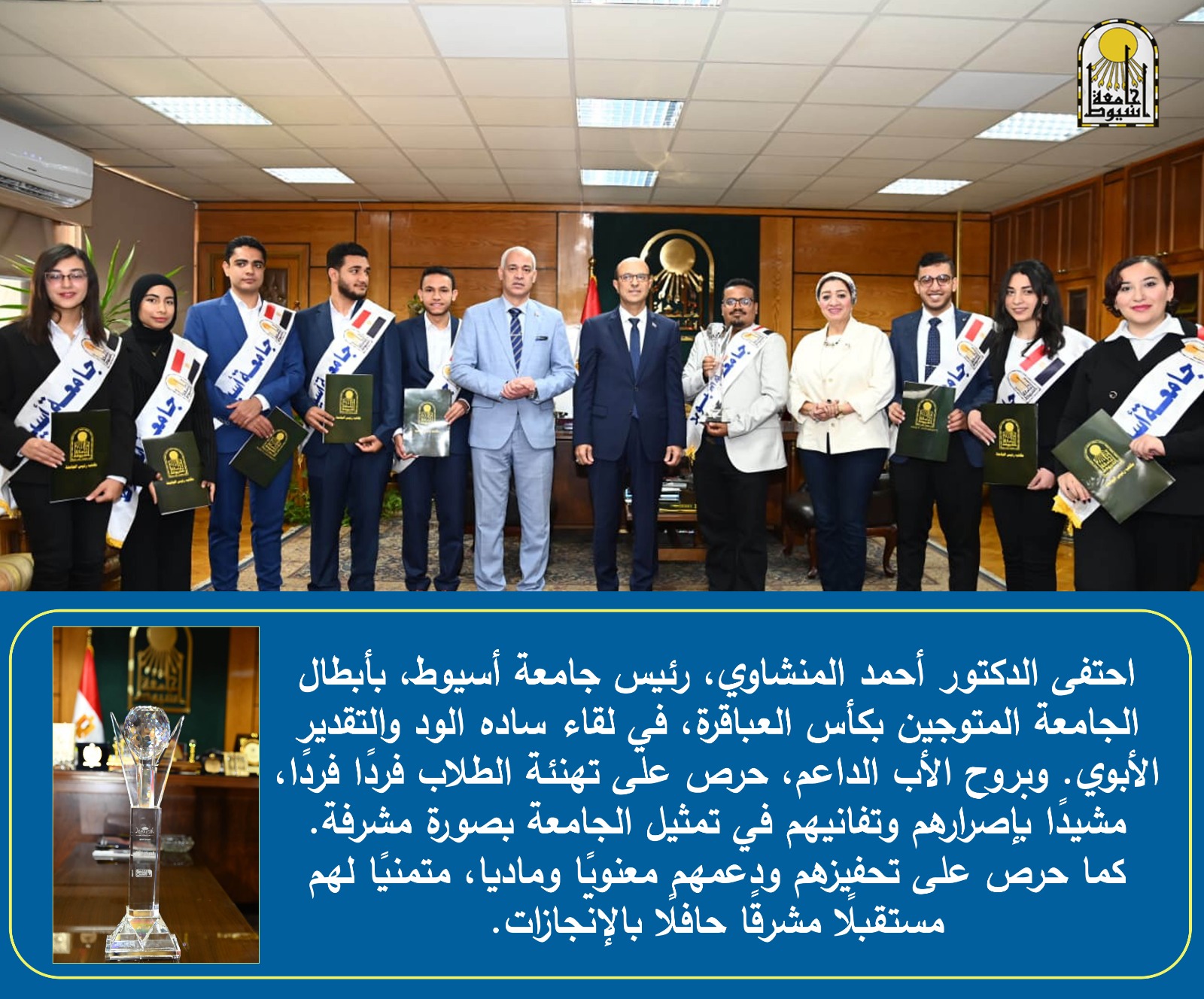الدكتور المنشاوي يحتفي بالفائزين بكأس العباقرة من شباب جامعة أسيوط ويدعمهم مادياً وأدبياً