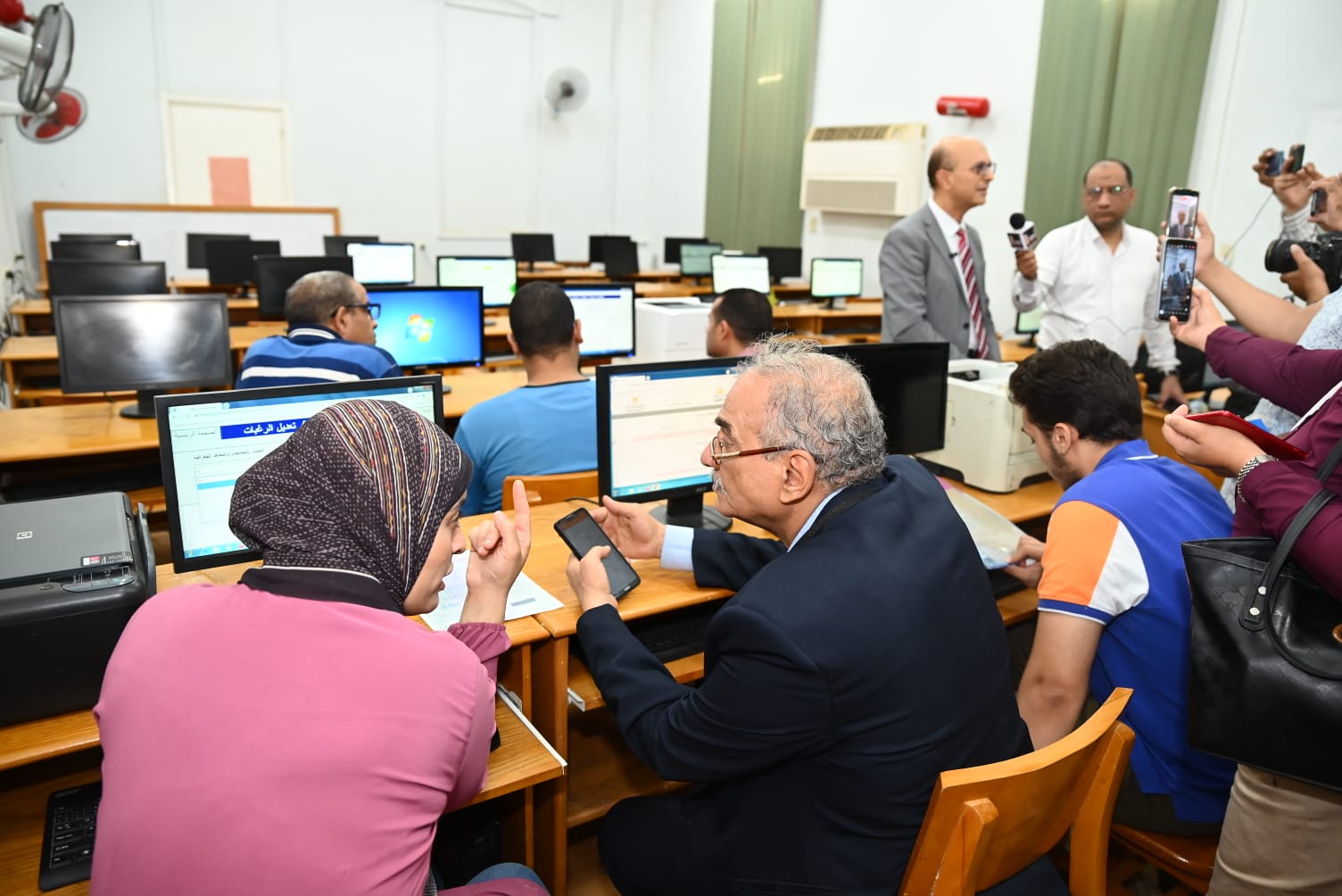 وأوضح الدكتور المنشاوي أنه تم تخصيص مكتبين للتنسيق الإلكتروني بالجامعة؛ الأول بكلية الآداب ويضم معملين بسعة 49 جهاز كمبيوتر ويشرف عليهما 10 مختصين، بينما يقع المكتب الثاني بمركز الحاسب الآلي في قطاع (1) بالمدينة الجامعية للطلاب، ويضم 45 جهازًا ويشرف عليه 9 مختصين، وتعمل المعامل يوميًا من الثامنة صباحًا وحتى الثالثة عصرًا، مع وجود فرق دعم فني لتقديم المساعدة الفورية.