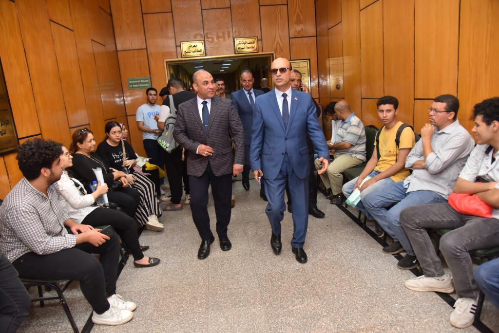 رافق الدكتور أحمد المنشاوي في جولته، الدكتور محمود عبدالعليم نائب رئيس جامعة أسيوط لشئون خدمة المجتمع وتنمية البيئة، والأستاذ مصطفى أمين عام الجامعة المساعد، والأستاذ طاهر حسن رئيس الإدارة المركزية لمكتب رئيس الجامعة.