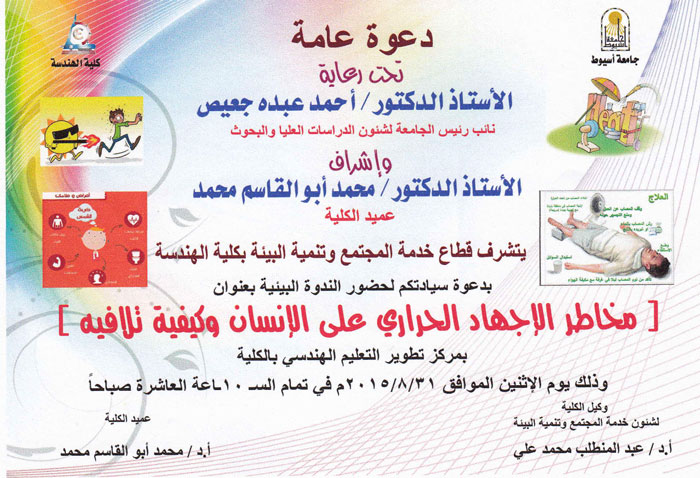 الدعوة عامة ندوة ( مخاطر الإجهاد الحرارى على الإنسان وكيفية تلافيه) 29 أغسطس 2015 الدعوة عامة ندوة ( مخاطر الإجهاد الحرارى على الإنسان وكيفية تلافيه)