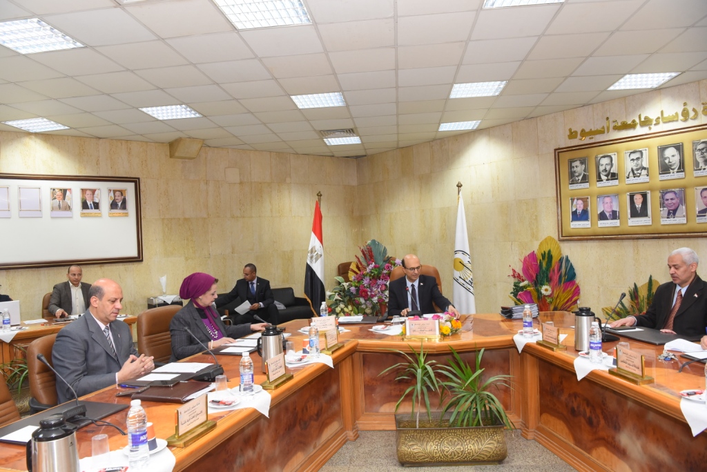 جاء ذلك خلال ترأس سيادته لاجتماع مجلس جامعة أسيوط اليوم الأثنين 26 ديسمبر 2022 فى جلسته الدورية وذلك بحضور الدكتورة مها كامل غانم رئيس الجامعة لشئون خدمة المجتمع وتنمية البيئة ، والدكتور أحمد عبد المولى القائم بعمل نائب رئيس الجامعة لشئون التعليم والطلاب والسادة عمداء كليات الجامعة والأستاذ شوكت صابر أمين عام الجامعة .