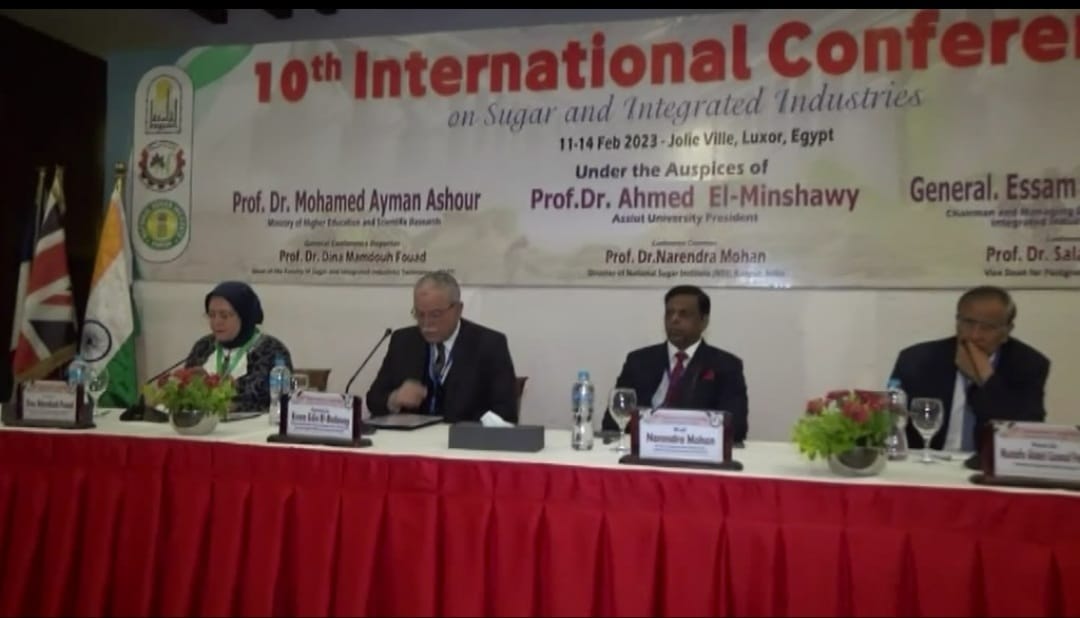 جاء ذلك خلال كلمة سيادته حول انطلاق وقائع المؤتمر الدولي العاشر عن صناعة السكر والصناعات التكاملية و الذى نظمته كلية تكنولوجيا صناعة السكر والصناعات التكاملية بجامعة أسيوط بالتعاون مع المعهد القومي للسكر بالهند و المقام بمدينة الأقصر ، و الذى شهد حضور الدكتورة دينا ممدوح عميدة كلية صناعة السكر والصناعات التكاملية بجامعة أسيوط و مقرر عام المؤتمر ، و الدكتور صلاح فتوح النقاش وكيل الكلية لشئون الدراسات العليا و البحوث و السادة وكلاء الكلية لمختلف قطاعاتها و رؤساء الأقسام و أعضاء هيئة التدريس و معاونيهم ، إلى جانب لفيف من رؤساء الجامعات و رؤساء مجالس الإدارات والأعضاء المنتدبين لشركات السكر المصرية والصناعات التكاملية ،والسيد اللواء عصام بديوى رئيس مجلس إدارة شركة السكر و الصناعات التكاملية المصرية ، و الدكـتـور مصطفى عبد الجواد فراج رئيس مجلس المحاصيل السكرية ، و الدكتور نارندرا هومان مدير المعهد القومى للسكر بالهند و المهندس عبد الحميد سلامة ، والمهندس حسن كامل رئيس مجلس إدارة شركه التو باريه للسكر ، والمهندس صلاح فتحي رئيس مجلس إدارة شركه الفيوم للسكر ، والمهندس عادل أيوب بالإنابه عن الدكتور أحمد أبو اليزيد رئيس مجلس إدارة شركة الدلتا ، و السادة المشاركون من الدول العربية (الإمارات – العراق - والسودان) والدول الأجنبية ( الولايات المتحدة الأمريكية - بريطانيا - ألمانيا – فرنسا- إيطاليا- النرويج- الهند- البرازيل- تايلاند- كينيا- نيجريا- - جامبيا) والزملاء بالجامعات ومراكز البحوث .