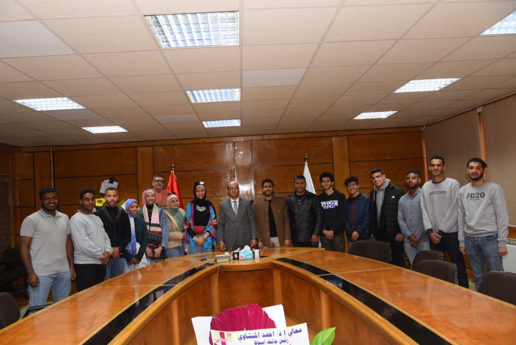 جاء ذلك خلال استقباله لأعضاء مجلسي اتحاد طلاب جامعة أسيوط الحكومية والأهلية لتقديم التهنئة لسيادته على توليه منصبه الجديد رئيس الجامعة ، وذلك بحضور الطالب مصطفى علاء رئيس اتحاد طلاب جامعة أسيوط و نائبه الطالبة زينب أشرف ، و الطالب سيف الدين شريف رئيس اتحاد طلاب جامعة أسيوط الأهلية و نائبه الطالب أحمد سامح و أعضاء مجلس الإتحادين ، و الأستاذ خالد ذو الفقار مدير رعاية شباب بجامعة أسيوط الأهلية ، والأستاذ أبو العيون سيد مسئول رعاية الشباب بجامعة أسيوط الأهلية.