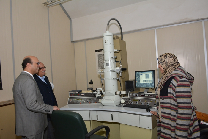 كما قام الدكتور المنشاوي بتفقد وحدة الميكروسكوب الإلكتروني والتي يترأسها الدكتور علام نفادى والتي تؤدى الخدمات البحثية والتشخيصية لأعضاء هيئة التدريس ومعاونيهم والتي تتطلب الفحص والتحليل بالميكروسكوب الإلكتروني بمختلف التخصصات والتي تخدم كليات الطب والطب البيطري والصيدلة والعلوم والزراعة وعدد من المراكز البحثية الأخرى .
