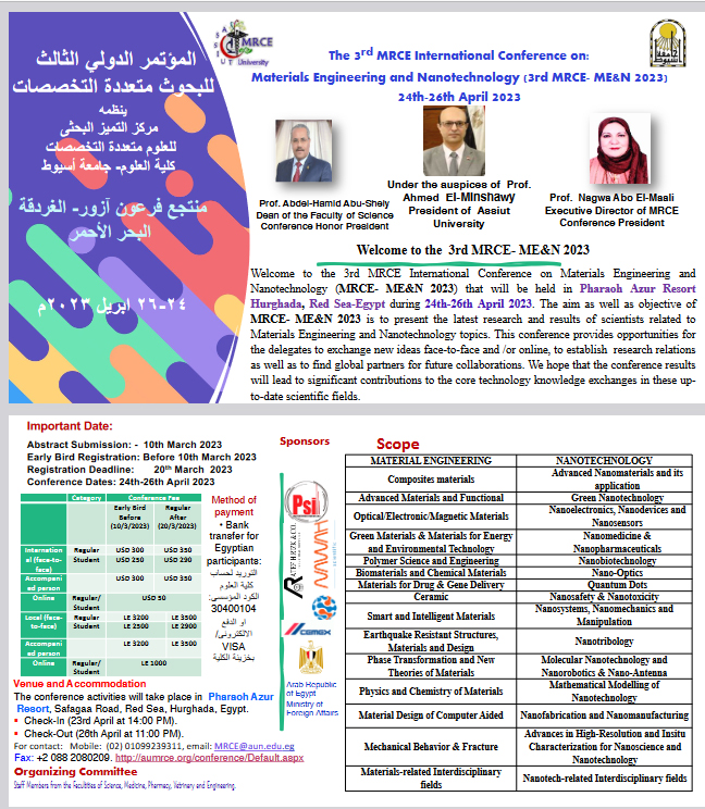 2023-04-24 أربعاء, 26 أبريل 2023 - 12:00 المؤتمر الدولى الثالث للبحوث متعددة التخصصات المؤتمر الدولى الثالث للبحوث متعددة التخصصات