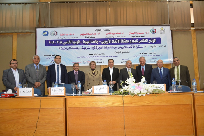 جاء ذلك خلال افتتاح فعاليات المؤتمر الختامي لنموذج محاكاة الإتحاد الأوروبي والذي نظمته كلية التجارة تحت عنوان" مستقبل الإتحاد الأوربي بين تداعيات الهجرة غير الشرعية ومعضلة البريكست " ، وذلك بحضور الدكتورة مها غانم نائب رئيس الجامعة لشئون البيئة وخدمة المجتمع ، والسفير محمد العرابي وزير خارجية مصر الأسبق ورئيس لجنة العلاقات الخارجية بمجلس النواب ، والسفير رؤوف سعد مساعد وزير خارجية مصر الأسبق ورئيس المكتب الوطني لاتفاقية المشاركة بين مصر والإتحاد الأوربي ، والإعلامي شريف عامر، والدكتور عبد السلام نوير عميد كلية التجارة ، والدكتور علاء عبدا لحفيظ وكيل كلية التجارة لشئون التعليم والطلاب ، والدكتور عبد الرحيم خليل وكيل كلية التجارة لشئون الدراسات العليا والبحوث ، والدكتور محمد أبو بكر المشرف الاكاديمى على النموذج ، إلى جانب نخبة من الأساتذة وأعضاء هيئة التدريس بكلية التجارة ، ولفيف من الطلاب .