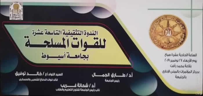 يشهد الدكتور طارق الجمال رئيس جامعة أسيوط غداً الأربعاء 27 نوفمبر وقائع الندوة التثقيفية التاسعة عشر للقوات المسلحة والتي تنعقد بقاعة محمد رأفت محمود بمركز المؤتمرات بالمبنى الإداري ، حيث أعلن رئيس الجامعة أن الندوة تستضيف اللواء أركان حرب خالد توفيق قائد القوات الدفاع الشعبي والعسكري وبحضور لفيف من القيادات التنفيذية والأمنية والعسكرية والشعبية بمحافظة أسيوط إلى جانب قيادات المجتمع الجامعي وأعضاء هيئة التدريس والطلاب من مختلف كليات الجامعة..