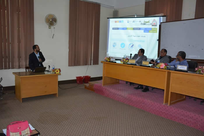 كما أضاف سيادته أن الورشة تناولت شرح كيفية استخدام المنصة الإلكترونية وأدوار مستخدمي المنصة , إلي جانب دور وحدة تكنولوجيا المعلومات بالكلية في إنشاء المقررات علي المنصة وتعريف القائمين بالتدريس ومعاونيهم وإضافة الطلاب ومساعدتهم في إنشاء وتفعيل البريد الإلكتروني , وكذلك دور أعضاء هيئة التدريس في رفع المواد التعليمية ( فيديوهات , تمارين , وأسئلة ..) ومتابعة الطلاب من خلال غرف الحوار وإعطاء التكليفات وإجراء الامتحانات .