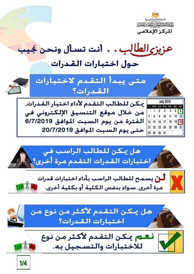 انفوجراف حول اختبارات القدرات لطلاب الثانوية العامة