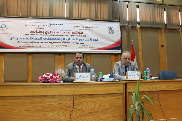 جاء ذلك تعقيباً على الندوة التثقيفية التى نظمتها الجامعة ضمن فاعليات مؤتمر " مصر تستطيع بطلابها " والذى يمتد من 13 إلى 15 أكتوبر الجارى ، وجاءت الندوة بعنوان "دور الشباب الجامعى فى الحفاظ على الوطن " وذلك بحضور الدكتور شحاتة غريب نائب رئيس الجامعة لشئون التعليم والطلاب ، والدكتور أشرف ذكى رئيس أكاديمية الفنون ونقيب المهن التمثيلية ، ولفيف ن عمداء ووكلاء الكليات وأعضاء هيئة التدريس إلى جانب حشد طلابى كبير من طلاب الجامعة ووفود أكثر من 17 جامعة مصرية مشاركة .