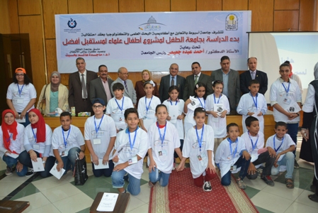 انطلقت بجامعة أسيوط أولى فعاليات الاحتفال ببدء الدراسة بجامعة الطفل وذلك تحت عنوان مشروع أطفال علماء لمستقبل أفضل والذى يجرى بالتعاون مع أكاديمية البحث العلمى والتكنولوجيا وذلك تحت رعاية الدكتور احمد عبده جعيص رئيس الجامعة وبحضور الدكتور طارق الجمال نائبه لشئون الدراسات العليا والبحوث ، والدكتورة ماجدة هاشم منسق جامعة الطفل بالجامعة وعميد كلية رياض الأطفال ، وبمشاركة نخبة من عمداء ووكلاء كليتيّ التربية ورياض الأطفال و أعضاء هيئة التدريس وأولياء الأمور والطلاب .