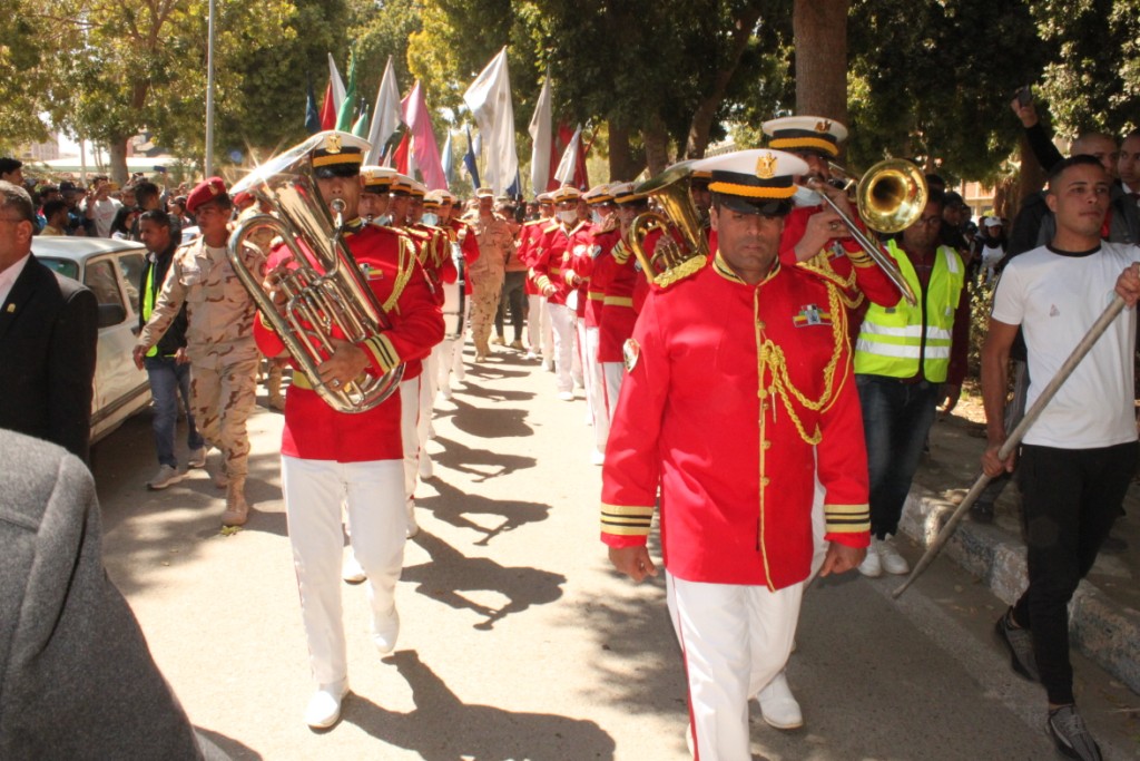 شارك اللواء أركان حرب محب حبشى قائد المنطقة الجنوبية العسكرية مع الدكتور طارق الجمال رئيس جامعة أسيوط والدكتور شحاتة غريب نائب رئيس الجامعة لشئون التعليم والطلاب فى تقدم مسيرة حاشدة بالأعلام وتتقدمهم الموسيقى العسكرية ضمت الآلاف من طلاب الجامعات المصرية والطلاب الوافدين الممثلين عن أكثر من 30 دولة عربية وأفريقية ضمن فاعليات اليوم الثانى من برنامج الملتقى الثاني لأسبوع الشعوب والتى رفعت شعار "الشعوب ضد التطرف والإرهاب" وشهدت كذلك مشاركة ضيوف الجامعة الدكتور يوسف الورداني مساعد وزير الشباب , الدكتور جلال سالم نائب رئيس جامعة بورسعيد لشئون التعليم والطلاب , الدكتور فتحي ندا نقيب المهن الرياضية, والكاتب الصحفي محمود بكري ، فضلا عن عدد من ضباط وجنود المنطقة الجنوبية العسكرية بأسيوط ولفيف من عمداء ووكلاء وطلاب الجامعة من مختلف الكليات والسادة منسقي الأنشطة الطلابية بالجامعة.