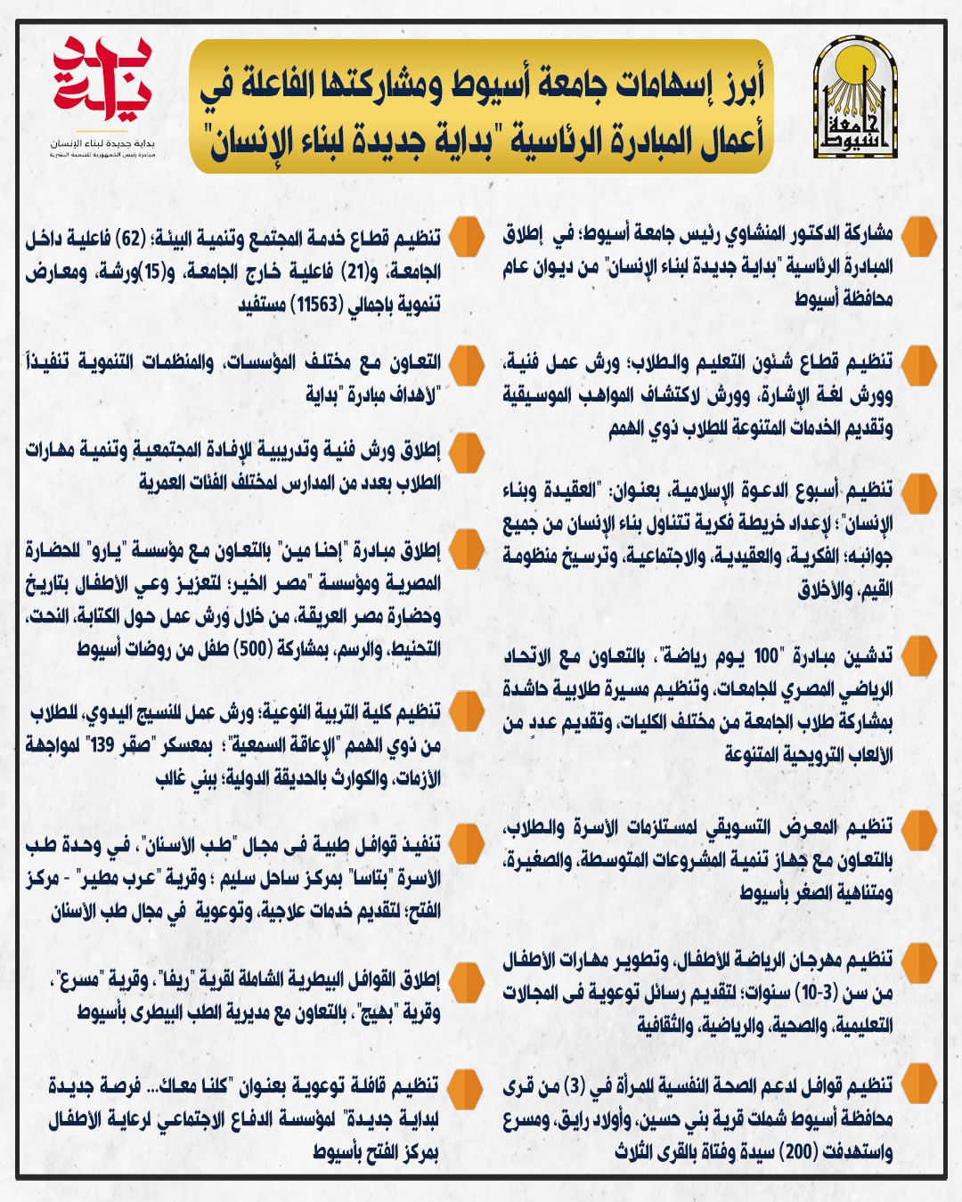 بالانفوجراف .. أبرز إسهامات الجامعة ومشاركتها الفاعلة في أعمال المبادرة الرئاسية "بداية جديدة لبناء الإنسان" 26 يناير 2025 بالانفوجراف .. أبرز إسهامات الجامعة ومشاركتها الفاعلة في أعمال المبادرة الرئاسية "بداية جديدة لبناء الإنسان"