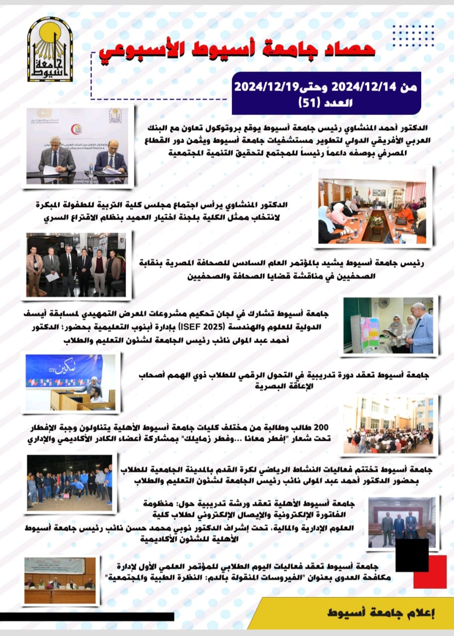 دائما المزيد من الأنشطة والفعاليات تجدونها على منصات جامعة أسيوط الرقمية