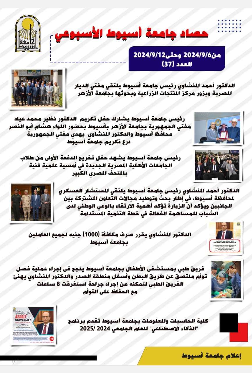 * قرر الدكتور المنشاوي صرف مكافأة (١٠٠٠) جنيه لجميع العاملين بجامعة أسيوط