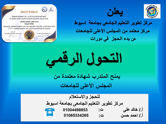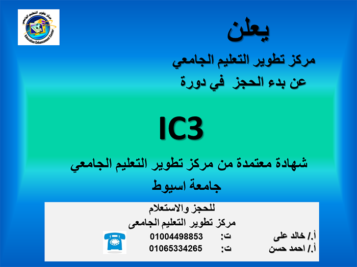 بدء الحجز في دورات IC3 والتحول الرقمي بمركز تطوير التعليم الجامعي