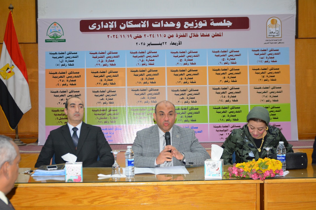عقدت إدارة الإسكان الإداري بجامعة أسيوط؛ جلسة، اليوم الأربعاء، الموافق ٢٢ من يناير؛ لتوزيع الوحدات السكنية الشاغرة بمساكن أعضاء هيئة التدريس، وفقاً للإعلان الصادر خلال شهر نوفمبر الماضي، برعاية الدكتور أحمد المنشاوي، رئيس جامعة أسيوط، وإشراف الدكتور محمود عبد العليم، نائب رئيس الجامعة لشئون خدمة المجتمع وتنمية البيئة، ورئيس مجلس إدارة الاسكان الإداري.