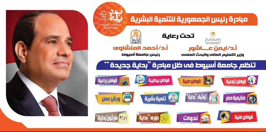 أكد الدكتور أحمد المنشاوي رئيس جامعة أسيوط؛ إطلاق الجامعة؛ للكثير من الأنشطة، والفعاليات؛ في إطار مشاركة وزارة التعليم العالي والبحث العلمي في مبادرة "بداية جديدة؛ لبناء الإنسان"، تحت رعاية الدكتور محمد أيمن عاشور وزير التعليم العالي والبحث العلمي.