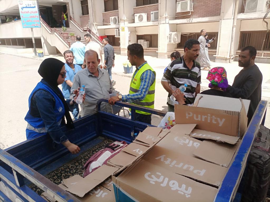 وقام متطوعو حياة كريمة بتوزيع (٢٠٠٠) زجاجة مياه على المرضى والمرافقين بالمستشفيات، حيث تم توزيعهم بالمستشفى الجامعي الرئيسي بالاستقبال العام، وقسم الإصابات، ووحدة الحروق، والعناية، وذلك تحت إشراف الدكتور علاء عبد المنعم مدير المستشفى، كما تم توزيع عدد منهم بمستشفى جراحة المسالك تحت إشراف الدكتور ضياء عبد الحميد مدير المستشفى.