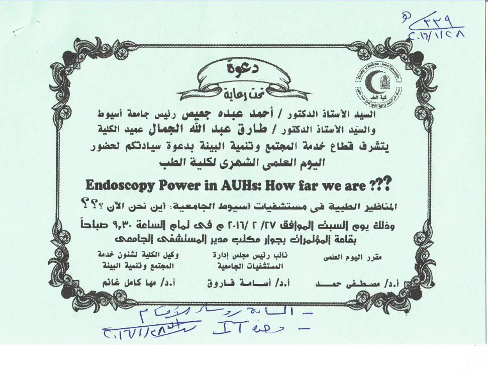 دعوة بعنوان اليوم العلمى الشهرى لكلية الطب