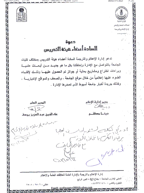 دعوة للسادة أعضاء هيئة التدريس من ادارة والإعلام والترجمة 21 مايو 2013 دعوة للسادة أعضاء هيئة التدريس من ادارة والإعلام والترجمة للتواصل معها واحاطتها بكل ماهو جديد من ابحاث علمية وبراءات اختراع