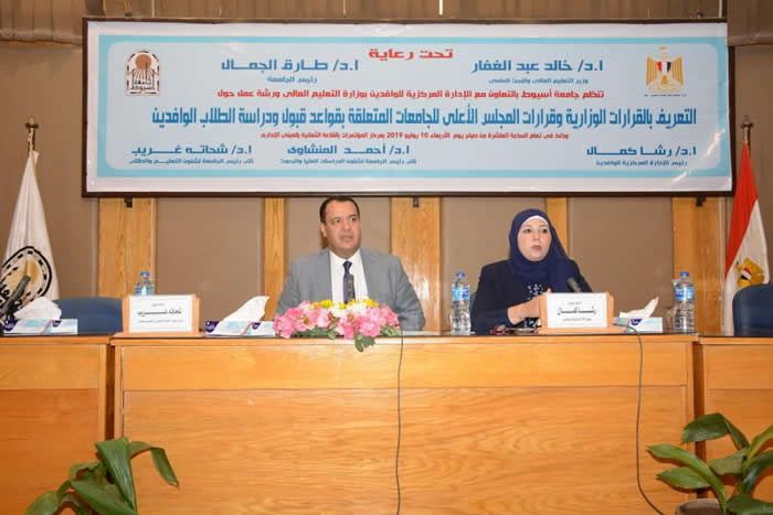 جاء ذلك خلال افتتاح الدكتور شحاتة غريب نائب رئيس الجامعة لشئون التعليم والطلاب ورشة عمل حول التعريف بالقرارات الوزارية وقرارات المجلس الأعلى للجامعات المتعلقة بقواعد ودراسة الطلاب الوافدين ، والتى تنظمها الجامعة بالتعاون مع الإدارة المركزية للوافدين بوزارة التعليم العالى فى اطار مبادرة " ادرس فى مصر " التى اطلقتها الوزارة ، وذلك تحت رعاية الدكتور خالد عبد الغفار وزير التعليم العالى والبحث العلمى " ، وبحضور الدكتورة رشا كمال رئيس الإدارة المركزية للوافدين بالوزارة ، هذا على جانب لفيف من عمداء كليات الجامعة ووكلائها لقطاعى شئون التعليم والطلاب والدراسات العليا والبحوث ومديرى إداراتها والمختصين بالعمل فى هذا المجال .
