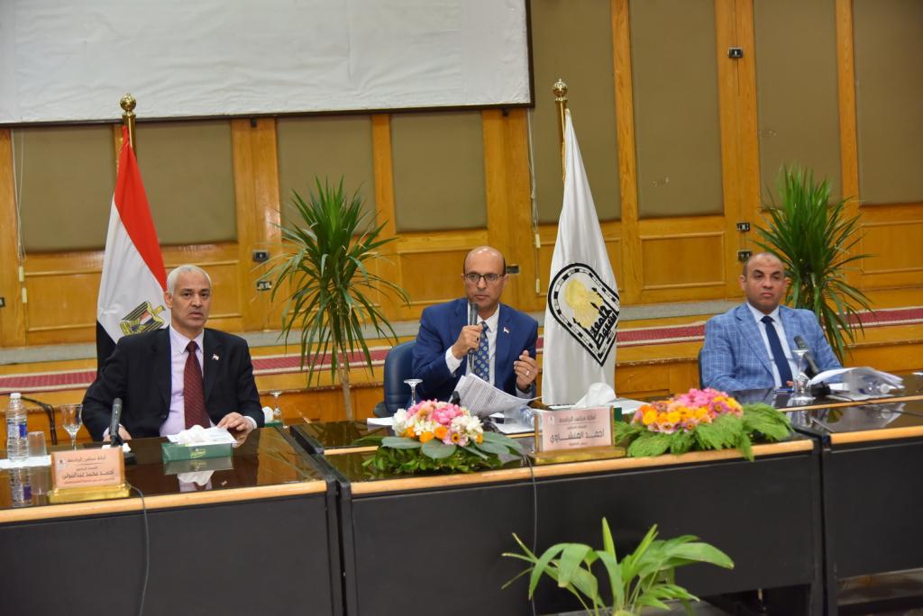 عقد مجلس جامعة أسيوط، برئاسة الدكتور أحمد المنشاوي، جلسته الشهرية، بحضور نواب رئيس الجامعة؛ الدكتور أحمد عبد المولى نائب رئيس الجامعة لشئون التعليم والطلاب، والدكتور محمود عبدالعليم نائب رئيس الجامعة لشئون خدمة المجتمع وتنمية البيئة، وعمداء الكليات، ومستشارو رئيس الجامعة، والأستاذ شوكت صابر أمين عام الجامعة؛ لمناقشة عدد من الموضوعات المتعلقة بالعملية التعليمية، والبحثية، والخدمية، إلى جانب استعراض اتفاقيات الشراكة والتعاون الدولي مع الجامعات الأجنبية، والعربية التي تنفذها الجامعة وفق استراتيجيتها.