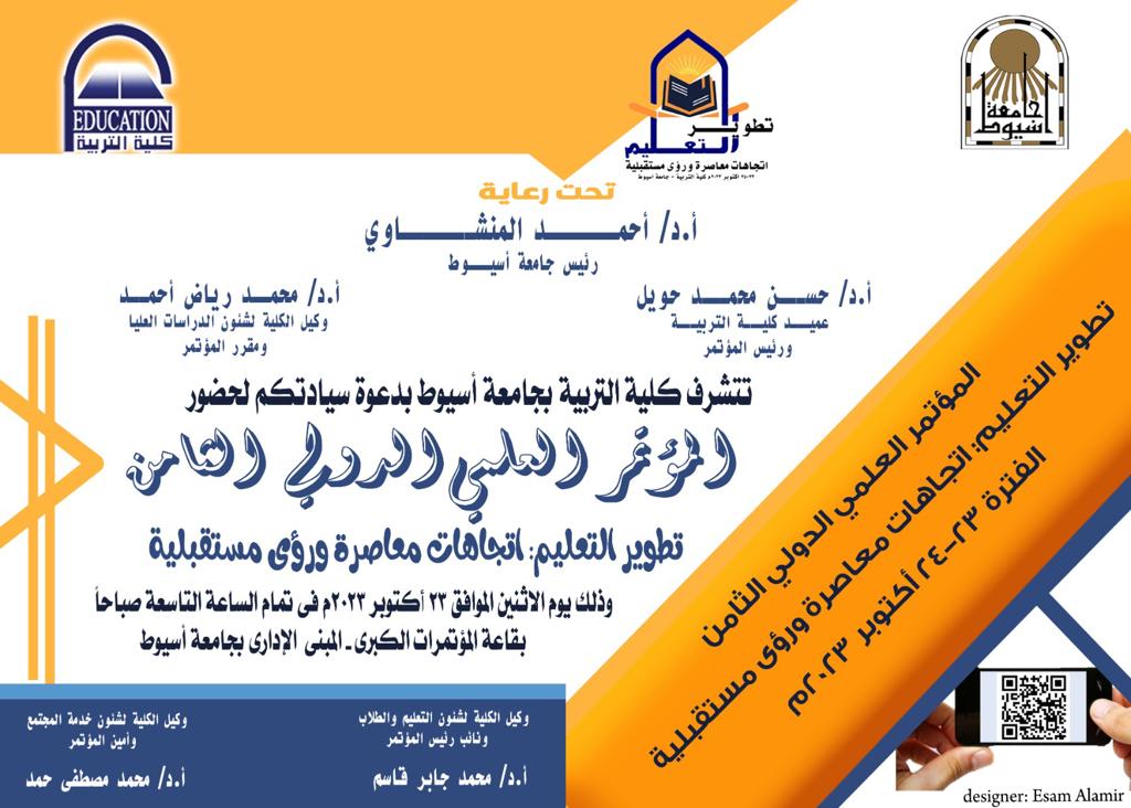 تنطلق فعاليات المؤتمر العلمي الدولي الثامن تحت عنوان: "تطوير التعليم: اتجاهات معاصرة، ورؤى مستقبلية" بكلية التربية بجامعة أسيوط، غداً الإثنين ٢٣ من أكتوبر، تحت رعاية الدكتور أحمد المنشاوي، رئيس جامعة أسيوط، والذي يستمر على مدى يومين ، وذلك فى تمام الساعة التاسعة صباحاً، بقاعة المؤتمرات الكبرى، بالمبنى الإداري بالجامعة.