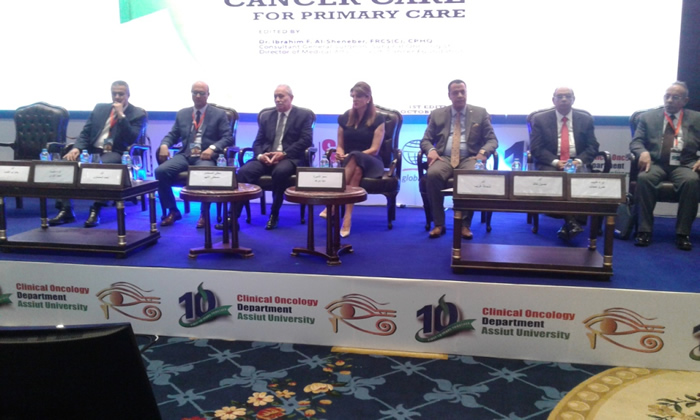 جاء ذلك فى إطار مشاركته فى وقائع الجلسة الرسمية للمؤتمر الدولى العاشر لعلاج الأورام والطب النووى والذى ينظمه قسم علاج الأورام والطب النووى بكلية الطب بجامعة أسيوط وذلك تحت رعاية الدكتور طارق الجمال رئيس الجامعة وبحضورالدكتور شحاتة غريب شلقامى نائب رئيس الجامعة لشئون التعليم والطلاب والدكتور احمد المنشاوي نائب رئيس الجامعة للدراسات العليا والبحوث، والدكتور حسام عبد الغفار مستشار وزير التعليم العالى لشئون المستشفيات الجامعية والدكتور سمير شحاتة الأستاذ بقسم علاج الأورام والطب النووي بكلية الطب جامعة أسيوط ورئيس المؤتمر الدولي العاشر لعلاج الأورام، والدكتورة حنان جمال الدين رئيسة القسم ، ومن ضيوف المؤتمر دينا مرعد رئيس الإتحاد الدولي لمكافحة السرطان ، والدكتور حسين خالد وزير التعليم العالى الأسبق، والدكتور سامى الخطيب رئيس رابطة الأطباء العرب لمكافحة السرطان، والدكتور ابراهيم شنيبر عضو مجلس أدارة الجمعية السرطان السعودية الى جانب حضور عدد من الشخصيات المجتمعية والطبية البارزة.