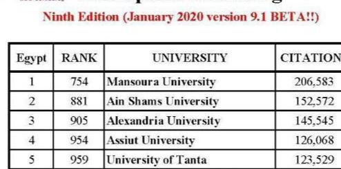 وأوضحت الدكتورة مها كامل غانم نائب رئيس الجامعات لشئون خدمة المجتمع وتنمية البيئة ومسئولة ملف تصنيف الجامعة لدى وزارة التعليم العالي أن جامعة أسيوط جاءت فى المركز 954 على مستوى جامعات العالم في هذا المجال وذلك ما يُعد تقدماً ملحوظاً عن أخر تصنيف معلن بهذا الشأن فى يوليو 2019 والتى كانت الجامعة مدرجة به فى المركز السادس محلياً و1105 عالمياً وهو التصنيف الذي يشمل تقيم نحو25 ألف جامعة حكومية وخاصة فيما يختص بقياس معدل الاستشهادات المرجعية واقتباس الباحثين لدراسات وأبحاث وابتكارات جامعة أسيوط والمقدمة فى مختلف المجالات .