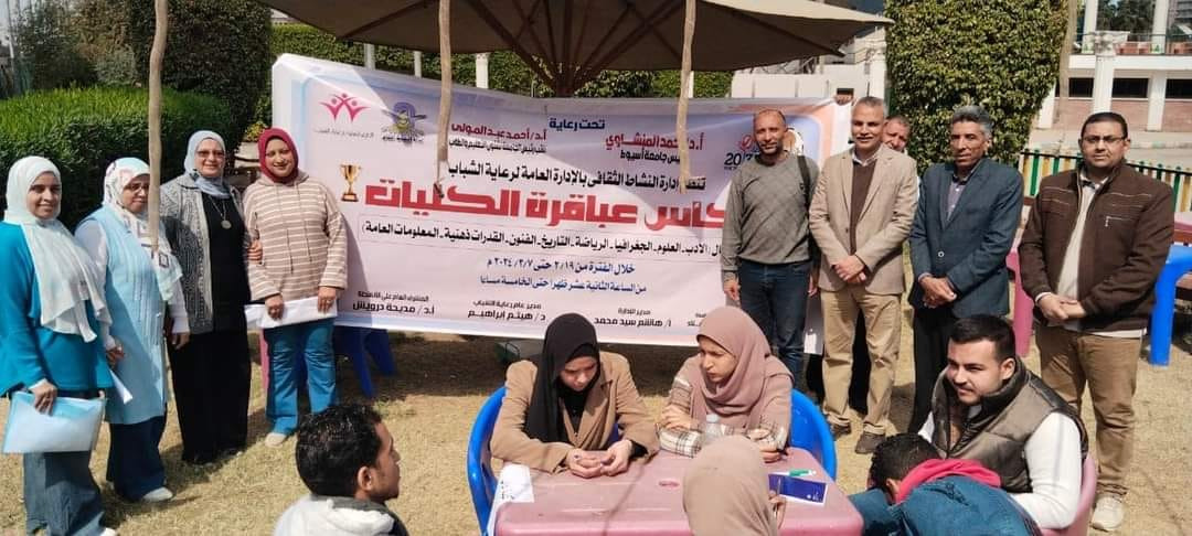 وتقام المسابقة بجامعة أسيوط الحكومية، بتنظيم من إدارة النشاط الثقافي بالإدارة العامة لرعاية الشباب بجامعة أسيوط، وتمتد فى الفترة من 19 فبراير الجاري وحتى 7 مارس القادم 2024، بمشاركة فرق طلابية من مختلف منتخبات كليات جامعة أسيوط الحكومية والجامعة الأهلية، وذلك تحت إشراف الدكتور أحمد عبد المولى نائب رئيس الجامعة لشئون التعليم والطلاب، وتحت إشراف الدكتورة مديحة درويش المشرف العام علي الأنشطة الطلابية، والدكتور هيثم إبراهيم مدير عام الإدارة العامة لرعاية الشباب، و إعداد وتنفيذ الأستاذ هاشم سيد محمد مدير إدارة النشاط الثقافي.