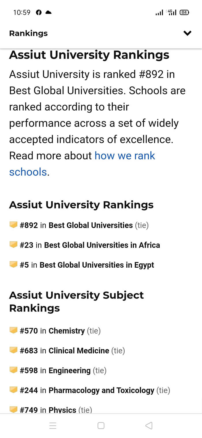 وأشار الدكتور أحمد المنشاوي نائب رئيس الجامعة لشئون الدراسات العليا والبحوث أن أن موقع " U.S.NEWS" أعلن إدراجه ل19 جامعة مصرية بين أفضل جامعات العالم والتي يبلغ عددها 1500 جامعة متقدمة علي مستوي دول العالم. موضحاً التصنيف الأمريكي يعتمد على النشاط البحثي والذي يتضمن تقييمه عدة معايير تتعلق بجودة البحوث الصادرة عن الجامعة وسمعتها محلياً ودولياً ، وكذلك عدد الأبحاث الصادرة عن الجامعة وكذلك الكتب العلمية ، والمؤتمرات الدولية وحجم التعاون الدولي ومخرجاته وعدد الإستشهادات بأبحاث الجامعة .
