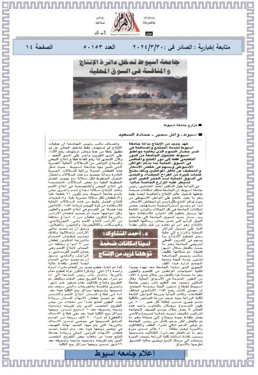 حصاد جامعة اسيوط الاسبوعى