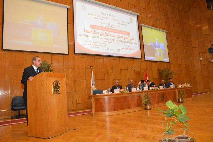 جاء ذلك خلا ل انطلاق فعاليات مؤتمر " مصر تستطيع بطلابها " والذي تنظمه الجامعة تحت رعاية الدكتور خالد عبد الغفار وزير التعليم العالي ، والدكتور طارق الجمال رئيس الجامعة، الدكتور طايع عبد اللطيف مستشار وزير التعليم العالي للأنشطة الطلابية ، والدكتور شحاتة غريب شلقامى نائب رئيس الجامعة لشئون التعليم والطلاب ورئيس المؤتمر ، والدكتور أحمد المنشاوي نائب رئيس الجامعة لشئون الدراسات العليا والبحوث ، والدكتور عمر سيد خليل مدير مركز تطوير التعليم الجامعى بالجامعة ومقرر المؤتمر ، والأستاذ عز المنصوري مدير عام الإدارة المركزية لرعاية الشباب ، والطالب على جلال رئيس اتحاد طلاب الجامعة ، ونخبة من عمداء الكليات المختلفة ووكلائها وأعضاء هيئة التدريس ،إلى جانب مشاركة متميزة من الدكتور أحمد عبده جعيص رئيس جامعة أسيوط الأسبق ، والدكتور عباس منصور رئيس جامعة جنوب الوادي السابق ، والدكتور جمال أبو المجد رئيس جامعة المنيا السابق ، واللواء وائل الدغيدى رئيس مكتب المخابرات العامة بأسيوط ، والعميد احمد قدري وكيل إدارة الأمن الوطني بأسيوط ، إلى جانب كوكبة من القيادات التنفيذية والشعبية والأمنية والدينية بالمحافظة ، ولفيف من الطلاب وممثلي الجامعات والمعاهد من 17 جامعة مصرية .
