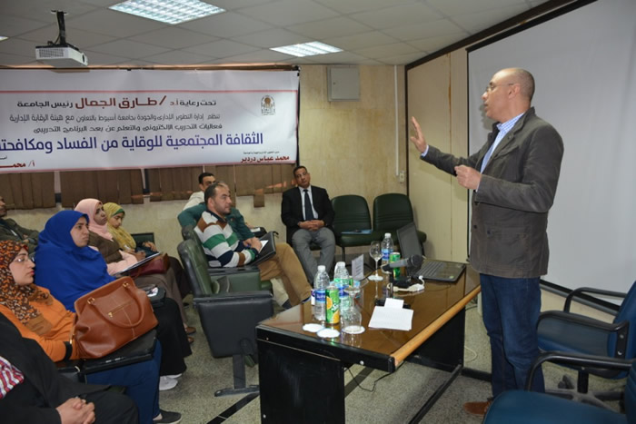 افتتح الأستاذ محمود بخيت أمين عام جامعة أسيوط البرنامج التدريبي للتعلم الإلكتروني والتدريب عن بعد والذي نظمته الجامعة بالتعاون مع هيئة الرقابة الإدارية بأسيوط وذلك تحت رعاية الدكتور طارق الجمال رئيس الجامعة واللواء أسامة جاد رئيس هيئة الرقابة الإدارية بأسيوط والعميد أيمن رمضان من هيئة الرقابة الإدارية وفى هذا الشأن صرح الأستاذ محمود بخيت أن الجامعة لها السبق في تفعيل برنامج التدريب عن بعد والذي يهدف إلى رفع كفاءة العاملين بجميع قطاعات الجامعة ويمثل طفرة جديدة في مجال التدريب والذي كان يتم تدريب ألف موظف من خلال 20 دورة سنوياً ولكن من خلال التدريب عن بعد سوف تتاح الفرصة لتشمل جميع العاملين بالجامعة بمختلف القطاعات خلال عام واحد .