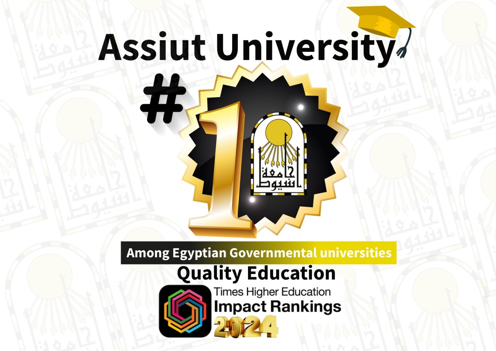 تواصل جامعة أسيوط؛ تقدمها في التصنيفات العالمية لأفضل الجامعات المصرية؛ حيث حققت الجامعة إنجازاً جديداً بتصدر الجامعات، والمؤسسات المصرية، والتقدم عالمياً؛ حيث احتلت المركز الأول بين الجامعات المصرية، والمركز من 201- 300 دولي بين أكثر من (1680) جامعة عالمية، و(38) جامعة مصرية، تم تصنيفهم هذا العام في مجال جودة التعليم؛ حيث حققت جامعة أسيوط طفرة كبيرة بالتقدم 200 مركز عالمي في التصنيف ذاته عن العام السابق.