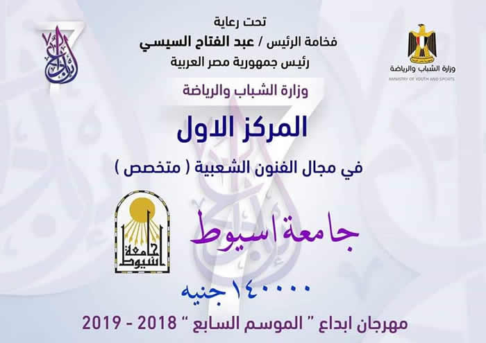وفى مجال الفنون الشعبية فاز الطالب محمد أحمد إبراهيم على بجائزة كأفضل مؤدى للحركة ، و حسن أحمد محمد أحمد بداري بجائزة أفضل تصميم وذلك بجائزة مالية قدرها 5 ألاف جنيه لكل منهما .