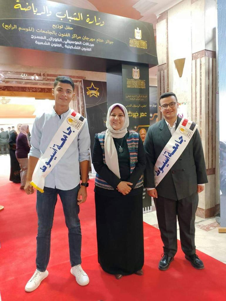 وقد فاز من جامعة أسيوط الطالبين؛ محمد محمود بالمركز الثانى فى مجال الفنون التشكيلية " أشغال فنية " ، وفادى رمزى على المركز الثالث فى مجال العزف الموسيقى الفردى " آلة العود، وتم تكريم الطلاب الفائزين فى حفل ختام مراكز الفنون بالجامعات الموسم الرابع؛ من قبل الدكتور أشرف صبحى وزير الشباب والرياضة، وتكريم الموسيقار عمر خيرت على مشواره الفنى.ً