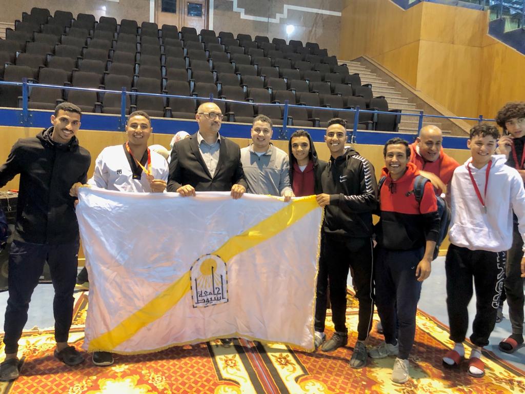 ومن جانبه أوضح الدكتور أحمد عبد المولى القائم بعمل نائب رئيس جامعة أسيوط لشئون التعليم والطلاب أن جامعة أسيوط نجحت فى حصد ميداليتين للمركز الثالث هما للطالب نصر محمد إبراهيم الطالب بكلية التربية الرياضية وزن فوق 87 ، والطالب محمد عاطف سيد الطالب بذات الكلية 68، مقدماً شكره كذلك لباقى أعضاء الوفد الطلابى المشارك لأدائهم المتميز والذى تضمن مشاركة كذلك الطلاب عبد السميع نادى ، محمد بهاء ، ومحمد عصام وذلك بقيادة الأستاذ محمد حسين مدرب الفريق، والأستاذ محمد رفعت شعيب إدارة الفريق ، وتحت إشراف الدكتور أحمد شريت المدير العام لإدارة العامة لرعاية الشباب