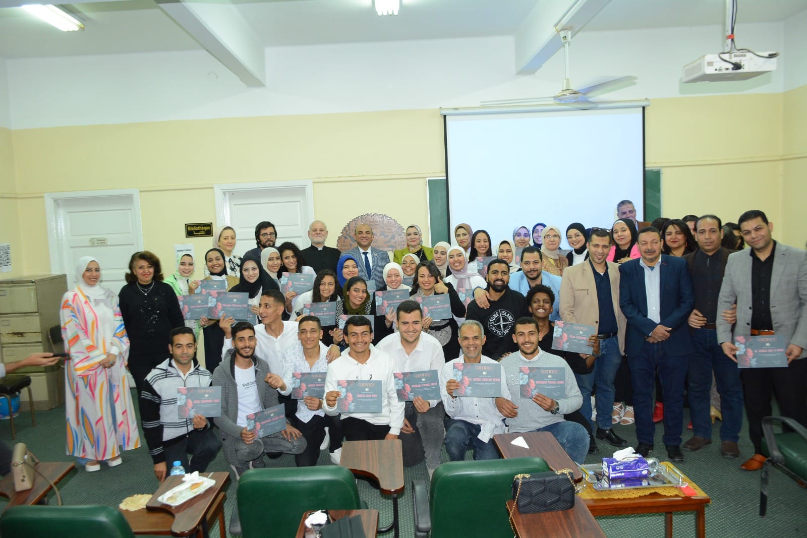 شهدت الإحتفالية حضور؛ الدكتور حسين الكاشف أستاذ الكيمياء المتفرغ بكلية العلوم بالجامعة، والمدير الأسبق بمركز دراسات اللغة الفرنسية، والدكتور عاطف السيد مدير مركز اللغة الروسية بالجامعة، والأب متاوس أديب مدير مكتب التنمية الشاملة بالمطرانية بأسيوط، والأستاذ علي أبوزيد موجه عام اللغة الفرنسية بأسيوط، ولفيف من أعضاء هيئة التدريس، والهيئة المعاونة بمختلف الكليات، والأستاذة نرمين عطا موجه اللغة الفرنسية، ومنسق مشروع TREFLE ؛لدعم تدريس اللغة الفرنسية بأسيوط، ولفيف من موجهي، ومعلمي، ومسئولي اللغة الفرنسية بإدارة أسيوط التعليمية، ومسيو إيمانويل فرنسي الجنسية أحد المتعاونين مع المركز،