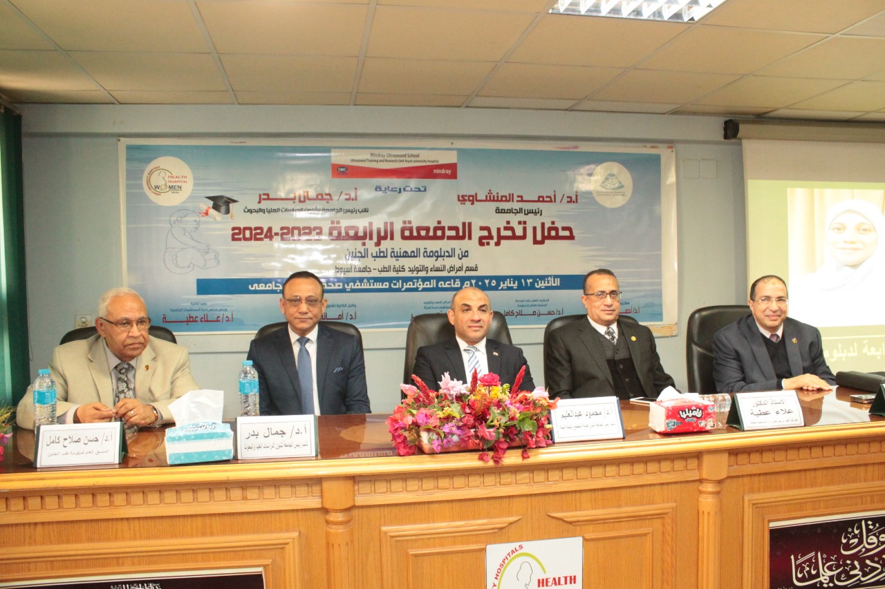 وبحضورالدكتور محمود عبد العليم نائب رئيس الجامعة لشئون خدمة المجتمع وتنمية البيئة، والدكتور جمال بدر نائب رئيس الجامعة لشئون الدراسات العليا والبحوث، وذلك تحت إشراف الدكتور علاء عطية عميد كلية الطب ورئيس مجلس إدارة المستشفيات الجامعية، والدكتور أحمد محمد نصر مدير عام مستشفي صحة المرأة، ورئيس قسم أمراض النساء والتوليد، والدكتور حسن صلاح المشرف العام على الوحدة، ومنسق الدبلومة.