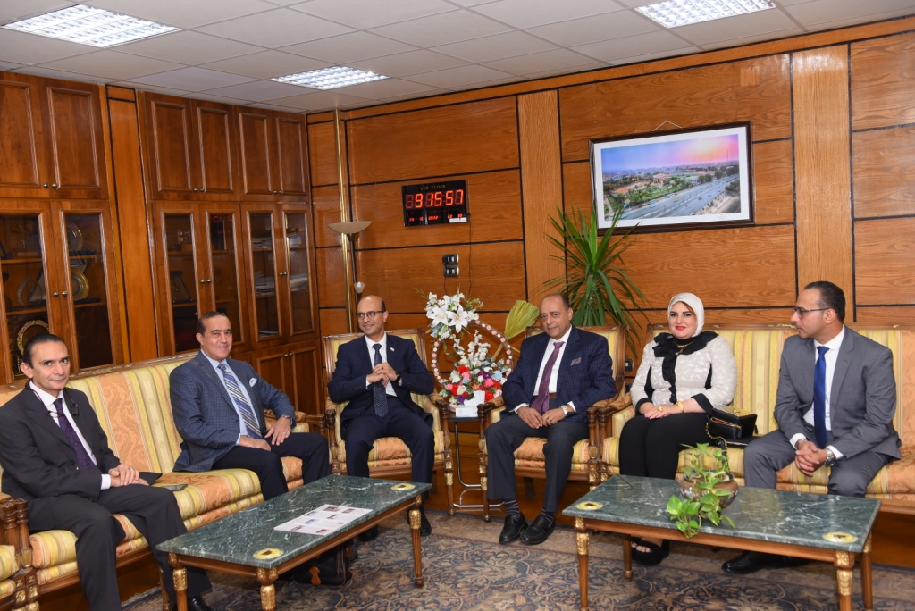 أستقبل الدكتور أحمد المنشاوى القائم بعمل رئيس جامعة أسيوط، الأستاذ أحمد عسقلانى الرئيس التنفيذي والعضو المنتدب لشركة مصر للسياحة خلال زيارته للجامعة لتوقيع تجديد العقد المبرم بين الجانبين للعام السابع على التوالى, وذلك بحضور وفد من الشركة والذى يضم الأستاذة مايسة يوسف رئيس قطاع المبيعات والتشغيل وعضو مجلس الإدارة, والأستاذ شريف بندارى الرئيس التنفيذى والعضو المنتدب للشركة المصرية للسياحة والفنادق, والأستاذ خالد العمرى مدير عام فنادق "اشتى ريزورت" إحدى شركات الشركة المصرية للسياحة والفنادق, والأستاذ مؤمن العمدة مدير فرع شركة مصر للسياحة، والأستاذ طاهر حسن رئيس الإدارة المركزية لمكتب رئيس الجامعة ، والأستاذة سحر جمال مدير مكتب مصر للسياحة بالجامعة.
