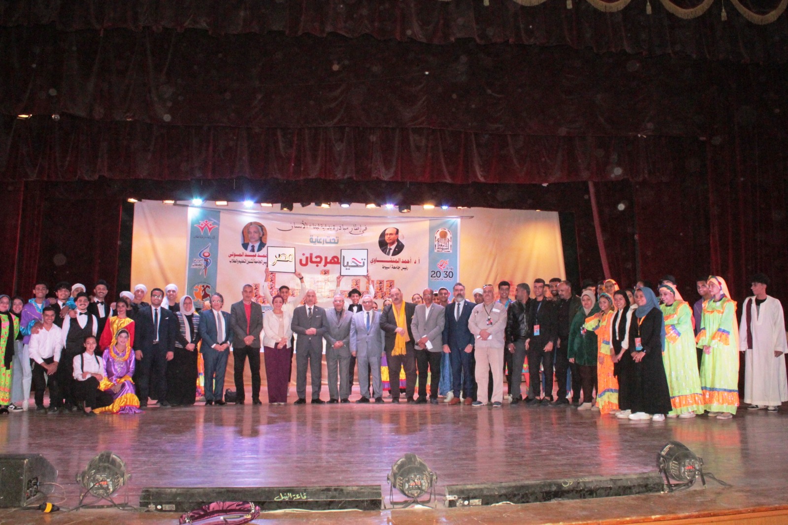 بالمشاركة المتميزة من كليات الجامعة في المهرجان، وأداء الفنون الشعبية والاستعراضية بجامعة أسيوط، والتي ترتبط بالعادات والتقاليد وتعبر عن الهوية الثقافية للمجتمع المصري، مؤكداً: حرص إدارة الجامعة على تقديم الدعم، وتشجيع الموهوبين والمتميزين من الطلاب، وتعزيز قيمة التنافس الشريف بينهم، وعرض مهاراتهم الفنية، في إطار الحفاظ على الموروث الشعبى، والهوية المصرية.
