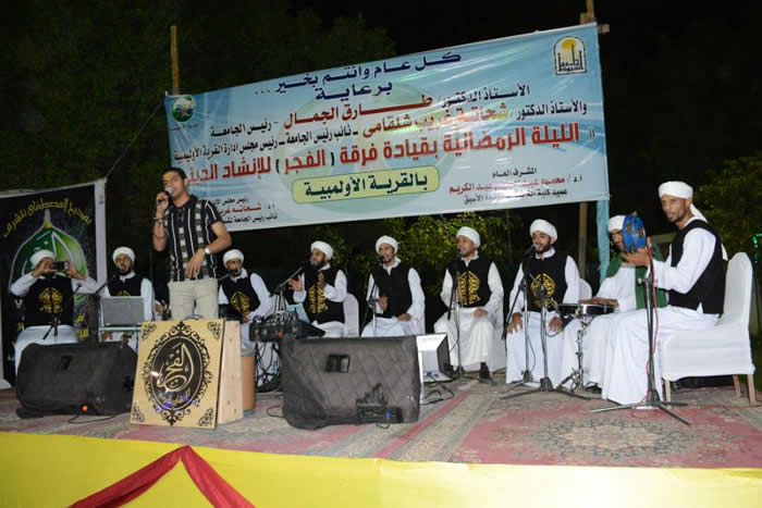 جاء ذلك خلال مشاركته في برنامج ليالي رمضان بالجامعة والذي اختتمته الجامعة بأمسية للإنشاد الديني لفرقة الفجر وذلك بالقرية الأولمبية وبحضور الدكتور محمود عبد العليم المشرف العام على القرية وبحضور لفيف من عمداء الكليات وأعضاء هيئة التدريس بالجامعة .