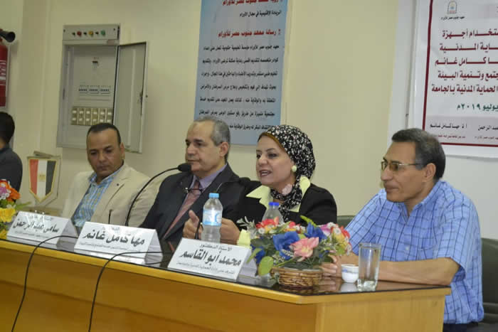 وفى هذا الإطار شاركت الدكتورة مها كامل غانم نائب رئيس الجامعة لشئون خدمة المجتمع وتنمية البيئة في أعمال ختام الدورة التدريبية للحماية المدنية للعاملين بمعهد جنوب مصر للأورام .