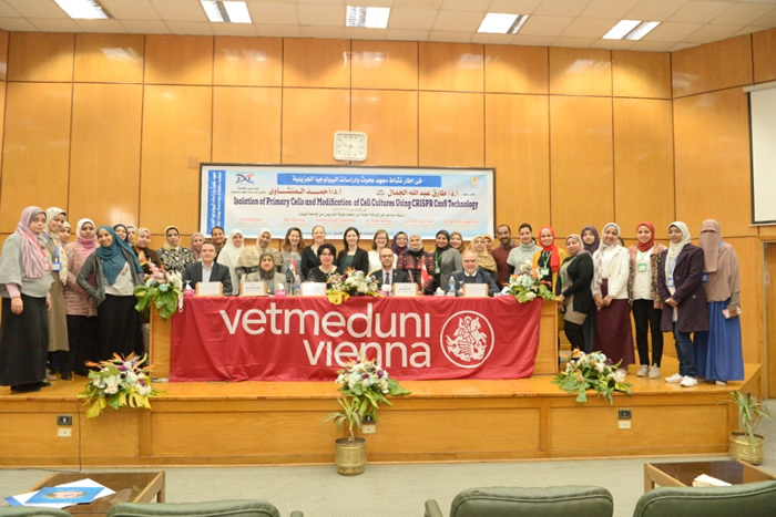 تحت رعاية الدكتور طارق الجمال رئيس جامعة أسيوط شهد الدكتور أحمد المنشاوي نائب رئيس جامعة أسيوط لشئون الدراسات العليا و البحوث ختام فعاليات ورشة عمل" عزل الخلايا الأساسية و تعديل سلوك الخلايا باستخدام تقنية CRISPR للتعديل الجينى " و التي نظمها " معهد بحوث و دراسات البيولوجيا الجزيئية،و ذلك بحضور الدكتور أسماء عبد الناصر عميدة المعهد ورئيس الورشة ، ولفيف من الأساتذة وأعضاء هيئة التدريس من معهد الكيمياء الحيوية الطبية بجامعة الطب البيطري بفينا بالنمسا وعلى رأسهم فلوريان جريبيان عميد المعهد ، و البروفسير أرثرا شوبر ، رودولف مولدزيو ، وجابرت منهارات ، إليزابيث كلير هايس ، ربرا كرانر ، سيلينا تروستر من أعضاء هيئة التدريس بجامعة الطب البيطرى بفيينا و بمشاركة الباحثين في عدداَ من التخصصات المتعلقة بالطب و الطب البيطري و العلوم من جامعة أسيوط و الوادي الجديد و أسوان .
