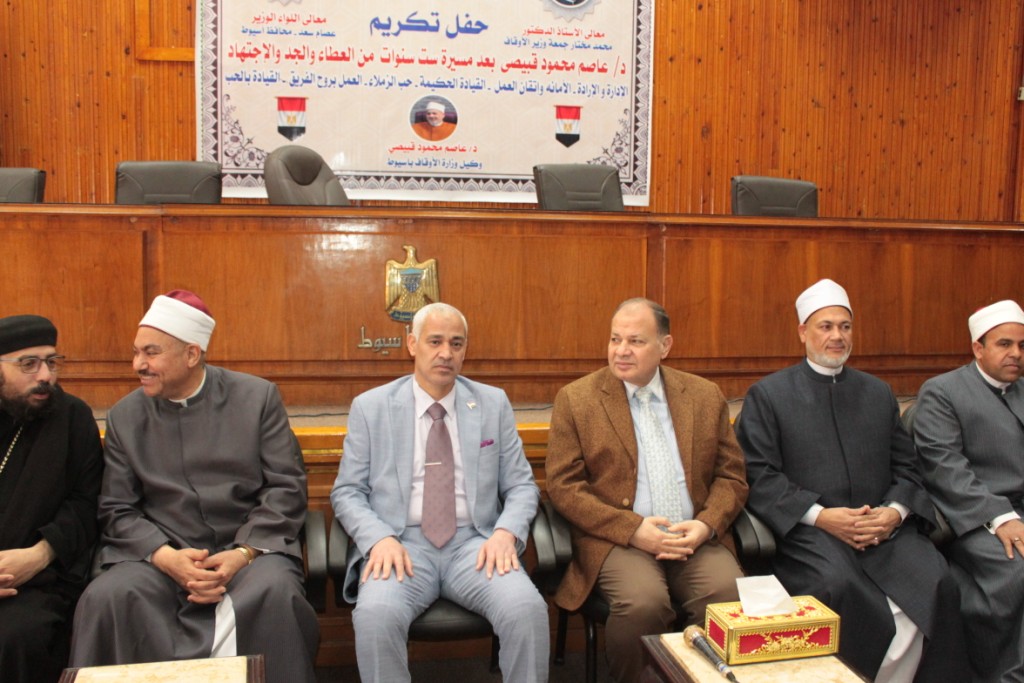 وأشاد اللواء عصام سعد محافظ أسيوط، بدور الدكتور عاصم القبيصي الإيجابي المثمر بمحافظة أسيوط، ومشاركته الفعالة في كافة إحتفالات وفعاليات ومبادرات المحافظة الوطنية، مشيراً أن المحافظة والجامعة والأوقاف والمطرانية يدا واحدة لخدمة المجتمع ووطننا الحبيب، متمنياً له التوفيق والسداد والنجاح الدائم.