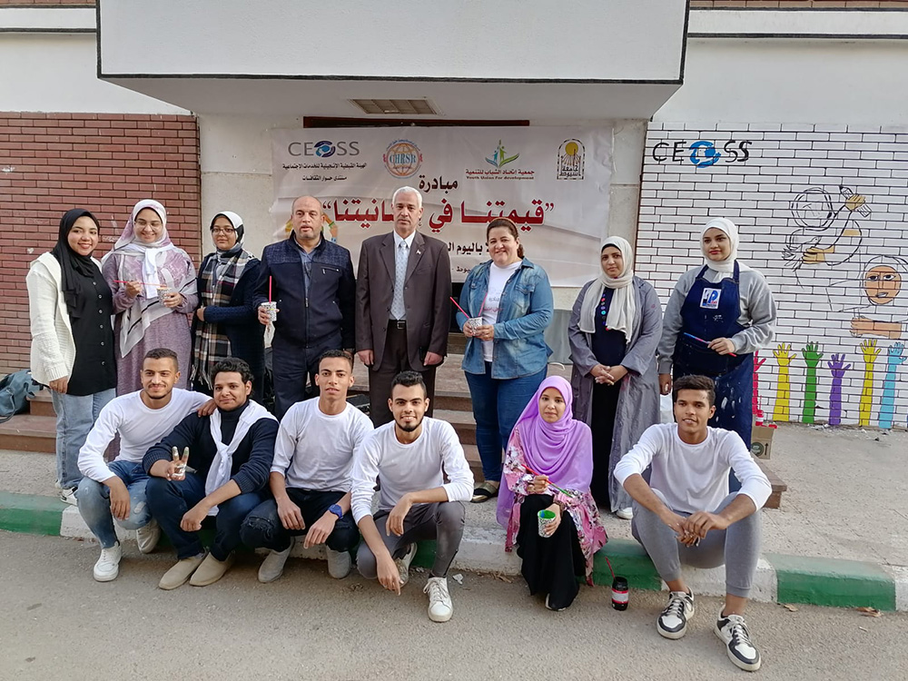 جاء ذلك تعقيباً على انطلاق فعاليات مبادرة " قيمتنا فى إنسانيتنا " والتى تأتى تزامناً مع إحتفال مركز دراسات وبحوث حقوق الإنسان بالجامعة والذى يوافق 10 ديسمبر من كل عام وذلك بالتعاون قطاعى شئون خدمة المجتمع وتنمية البيئة، وشئون التعليم والطلاب، والهيئة القبطية الإنجيلية للخدمات الإجتماعية" منتدى حوار الثقافات " وجمعية اتحاد الشباب للتنمية وكلية التربية النوعية بالجامعة وشهدت حضور الدكتورة مها كامل غانم نائب رئيس الجامعة لشئون خدمة المجتمع وتنمية البيئة، والدكتور أحمد عبد المولى القائم بأعمال نائب رئيس الجامعه لشئون التعليم والطلاب، والدكتور وجدى نخلة المشرف على كلية التربية النوعية، والدكتور أحمد شريت مدير عام إدارة رعاية الشباب المركزية، الاستاذة كرستين فكرى المنسق العام لمركز دراسات وبحوث حقوق الإنسان بالجامعة وأعضاء هيئة التدريس ومعاونيهم العديد من المتطوعين من الطلاب ومن الجهات المشاركين المبادرة.