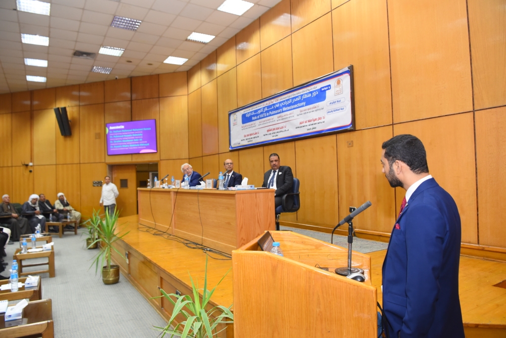 وأوضح الدكتور أحمد المنشاوى أن الرسالة تهدف إلى مقارنة المنظار الجراحي للصدر مع شق الصدر لاستئصال ثانويات الرئة من حيث العوامل الآتية :مثل الكفاءة الجراحية من حيث وقت العملية و معدلات فقد الدم أو الوفاة أثناء التدخل الجراحي ، الفاعلية العلاجية من حيث الاستئصال الكامل للورم مع حواف أمان سلبية و معدل اكتشاف ثانويات دقيقة غير مشخصة بالمسح الطبقي قبل العملية ، و كذلك معدل المضاعفات قصيرة المدى بعد التدخل الجراحي الحادث فى الرئة أو خارجها وكذلك معدل النقاهة بالمستشفى بعد التدخل الجراحي .