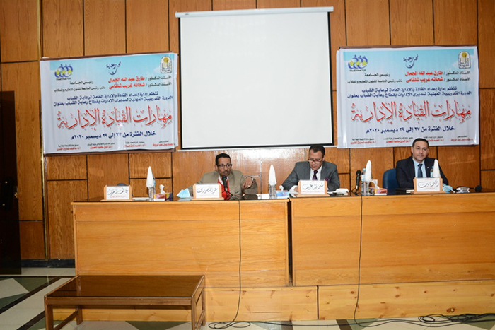 شهدت جامعة أسيوط اليوم برنامجاً تدريبياً في مجال إعداد القادة للعاملين بمختلف إدارات جامعة أسيوط و الذي تنظمه إدارة إعداد القادة بالإدارة العامة لرعاية الشباب وذلك لمديري الإدارات بقطاع رعاية الشباب بعنوان " مهارات القيادة الإدارية " و الذي يمتد خلال الفترة من 27 الي 29 من ديسمبر الجاري وذلك تحت رعاية الدكتور طارق الجمال رئيس الجامعة وبحضور الدكتور شحاته غريب شلقامي نائب رئيس الجامعة لشئون التعليم و الطلاب و الدكتور احمد ثابت هلال مستشار إدارة إعداد القادة و الأستاذ عز الدين المنصوري مدير عام رعاية الشباب بالجامعة و الدكتور أحمد شريت مدير الإدارة العامة للإتحادات الطلابية و لفيف من أعضاء هيئة التدريس من مختلف الكليات بالجامعة .